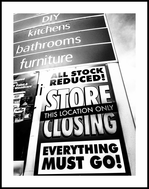 Another store in our home town is closing down – a victim of changing shopping habits, sky high commercial rents and pressures on disposable incomes. It’s the only DIY/hardware store for miles around, and looks set to be replaced by yet another low end food store…