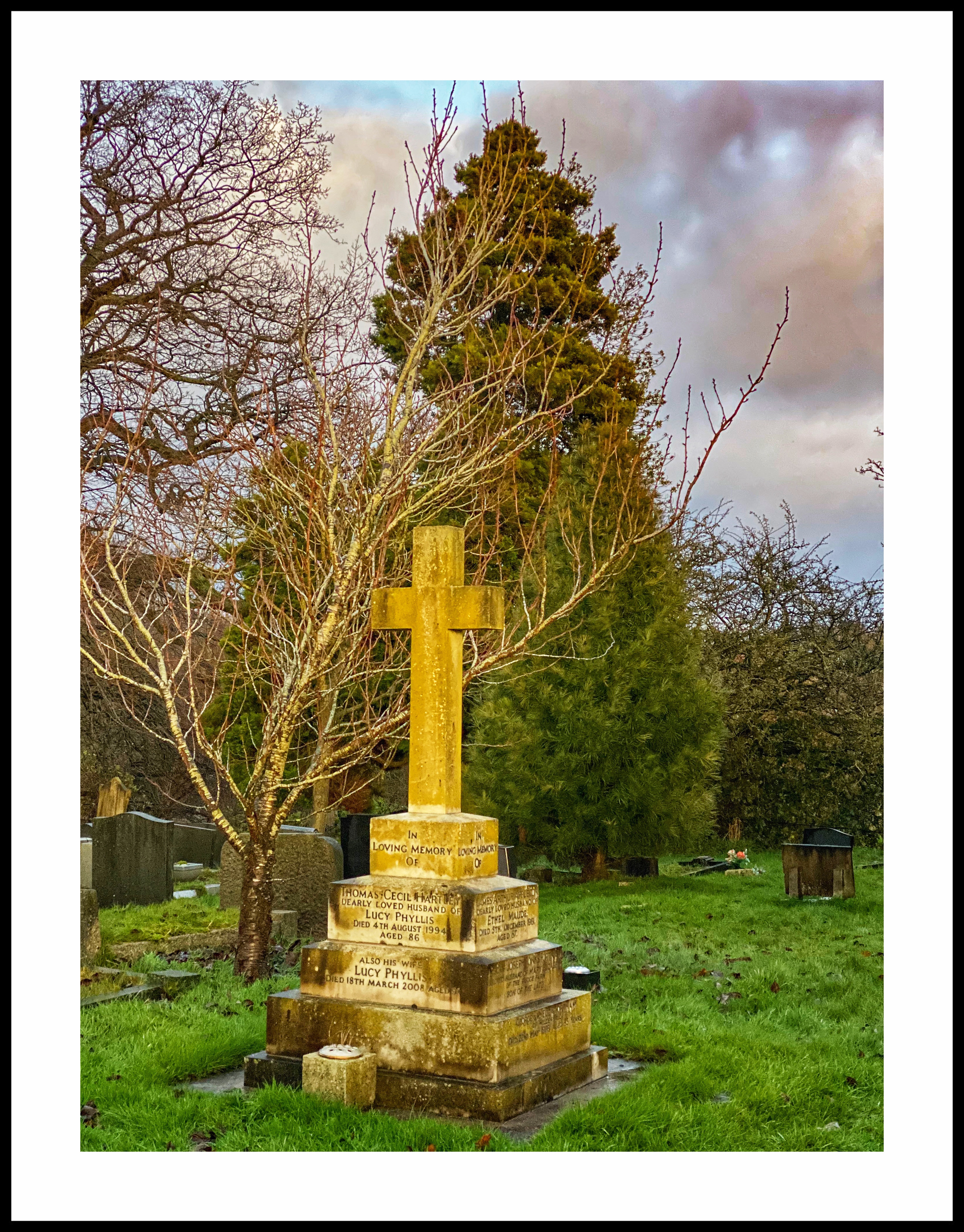 I pass this little country church quite often, but never when there is any kind of service going on, so always easy to park outside. It was very late in the afternoon today when I passed by, and I could see the last rays of sunshine on some of the gravestones, so stopped for a quick photo. This gravestone seems to stand out from all those around…