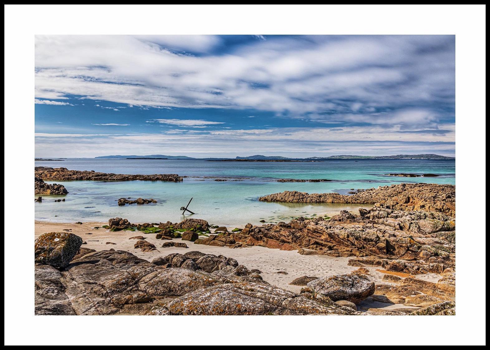 Near Cleggan, in Connemara, Ireland, this beautiful beach takes its name from an ancient anchor buried in the sand… It is believed to be from the 1000 ton 3 mast barque ‘Verity’, from Nova Scotia, that was wrecked in a storm in 1890.