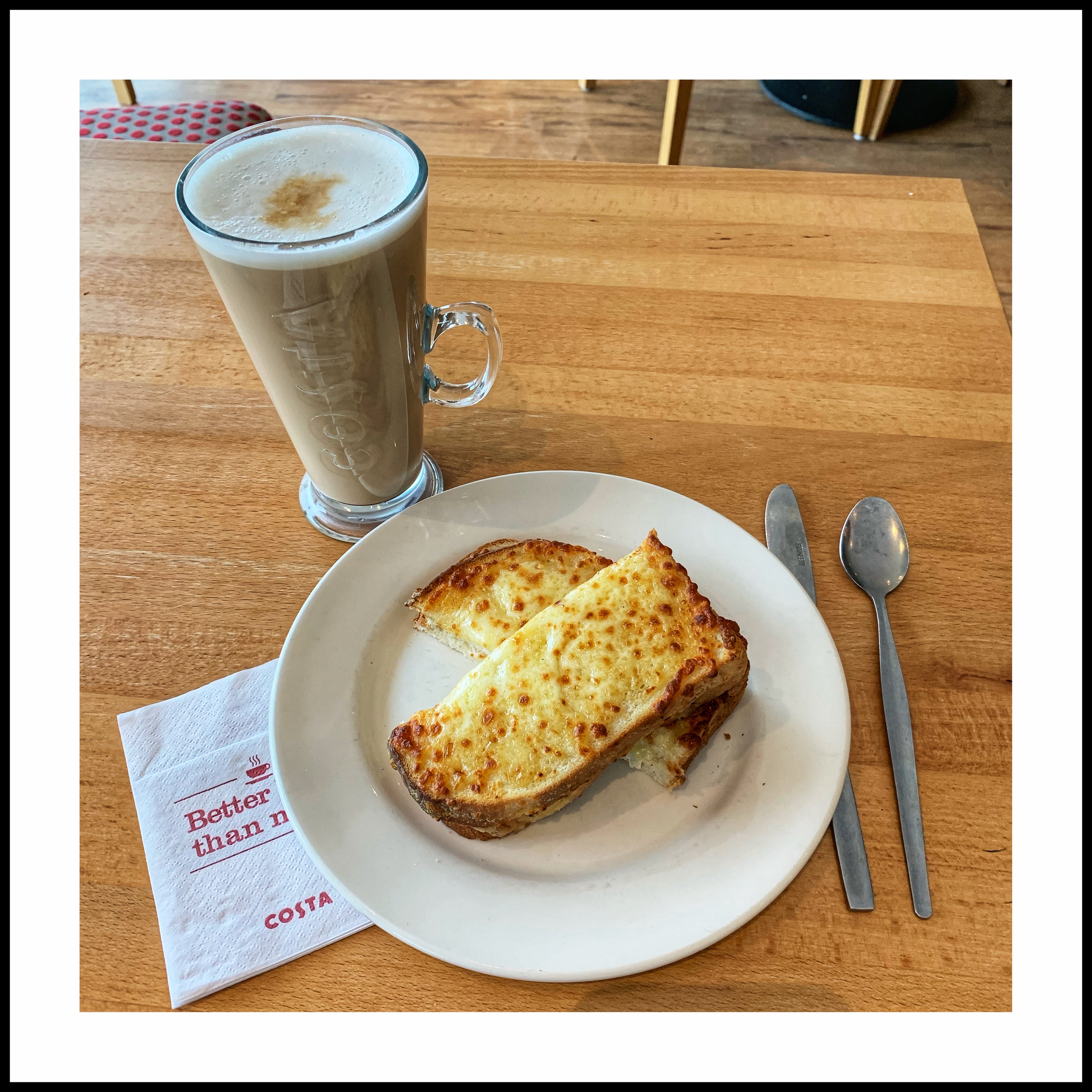 When I was a kid and had to go to the dentist, my mom would take me afterwards to a cake shop and buy me whatever I wanted as a treat. I figured today’s visit to the dentist deserved a treat, so it was brunch at Costa Coffee…