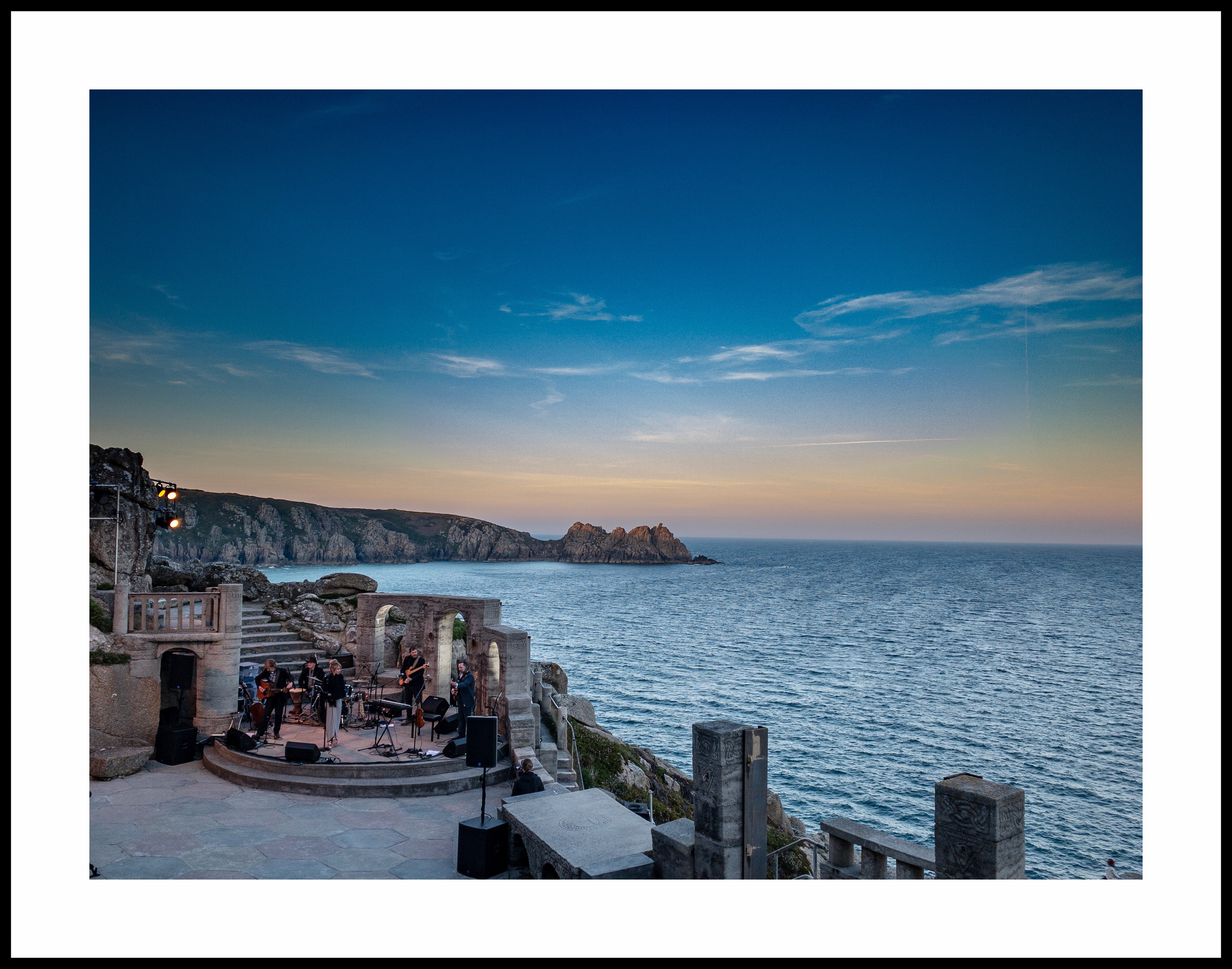 Tonight’s outing was to the Minack Theatre near Land’s End. An amazing venue, carved out of the side of a cliff and hosting everything from music concerts to Shakespeare, it was conceived and largely built by Rowena Cade and her gardener from 1930 onwards. The performance tonight was by ‘Gravity’ – a rock/indie band based locally. Even though the day had been warm, it was far from warm when the sun went down! A magical experience nevertheless…