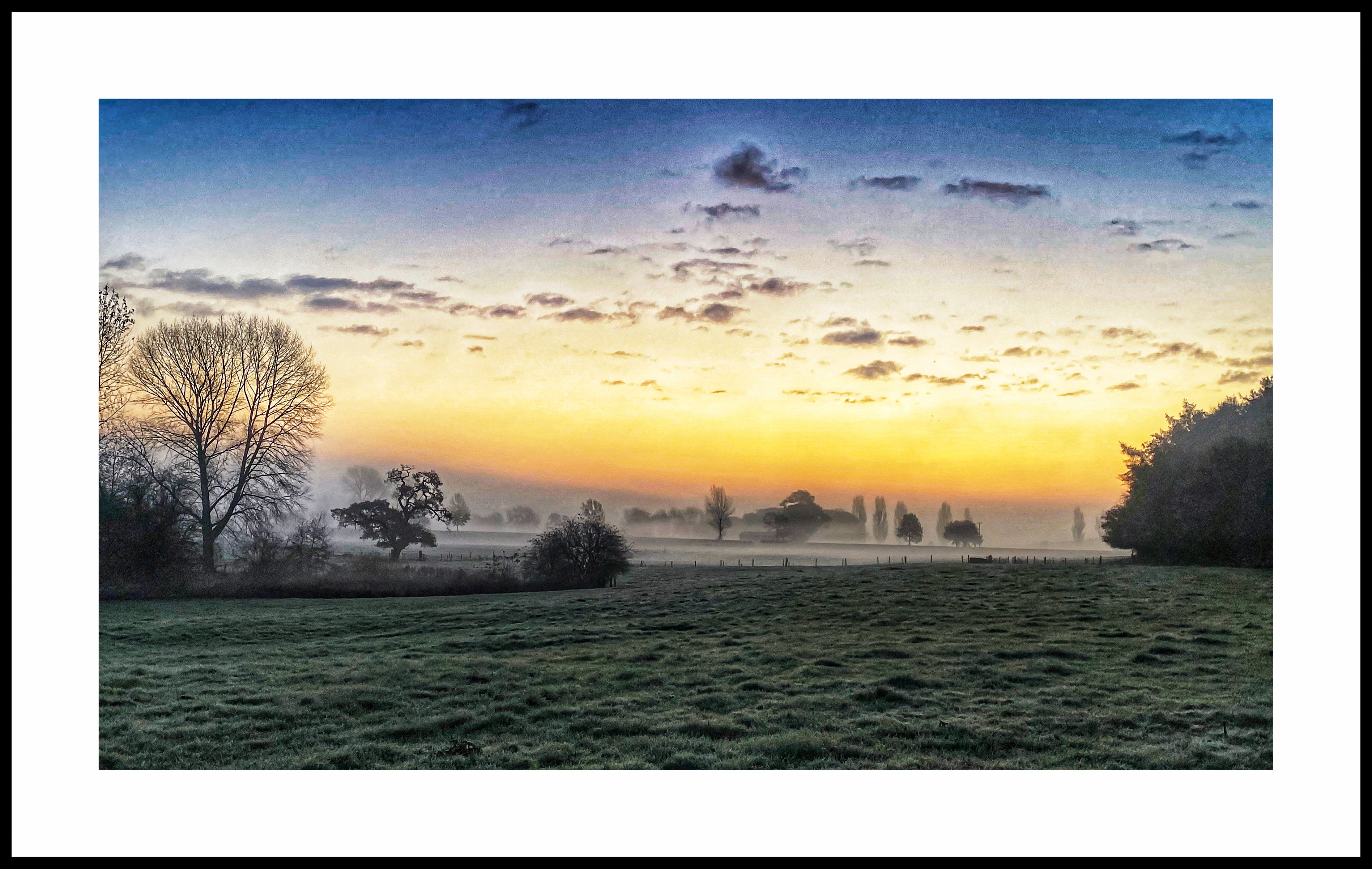 After several weeks of persistent wet weather, a clear spell yesterday meant a really cold start to today, with mist and a ground frost. With fields all around us, it took only a moment to find a spot to shoot the early morning light.