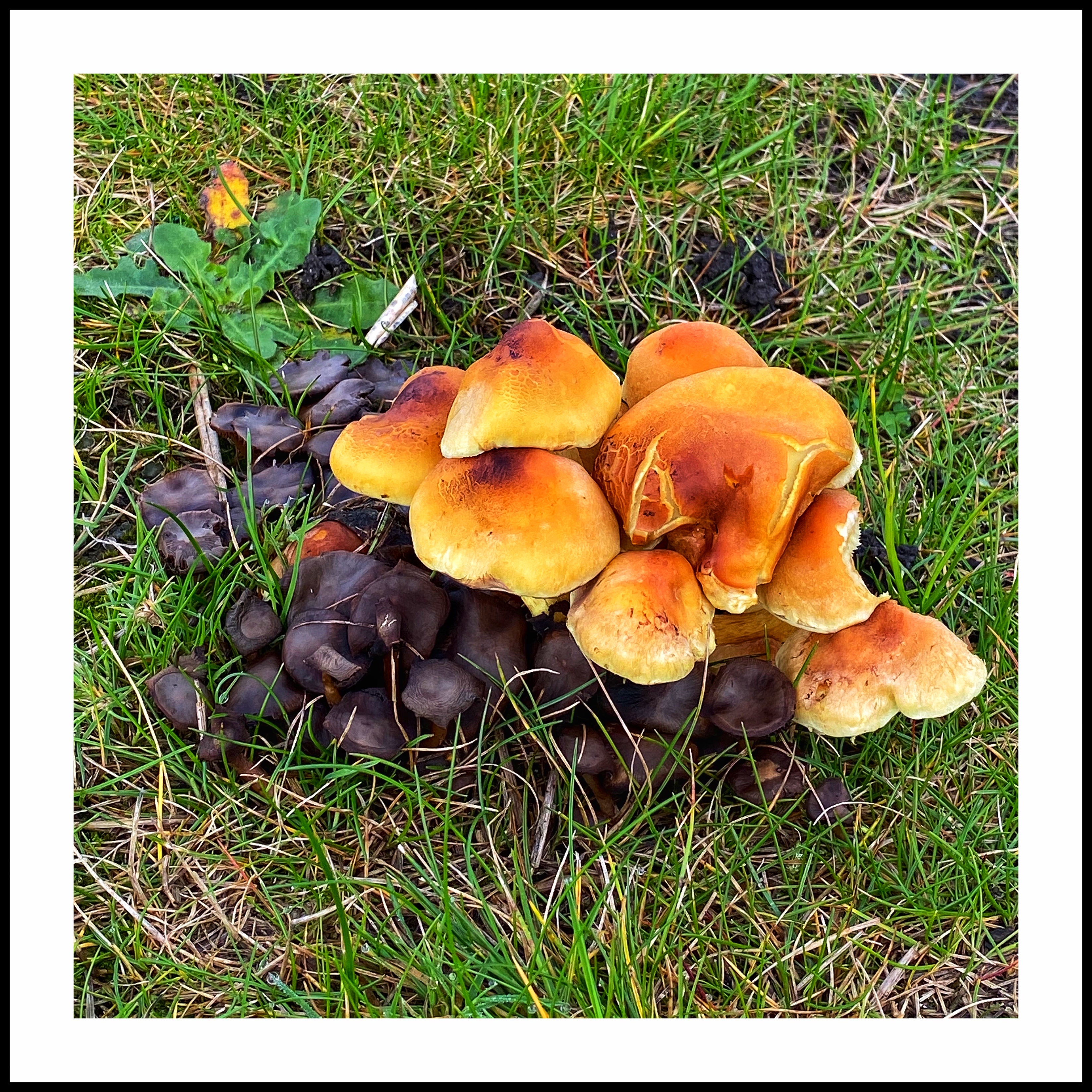 More mushrooms… It’s that time of the year – a combination of damp but still moderately mild weather that causes an explosion of fungi all around. We get them in the lawn and flower beds, and further afield, in the hedgerows and fields. I’m sure some are edible, but I don’t have a clue!