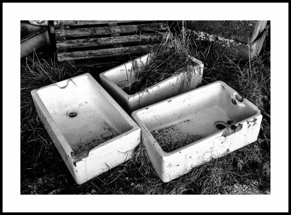 Our local farmer has a store area where he keeps ‘bits and pieces’ (aka junk) that might ‘come in handy’ one day… These were some large Belfast style sinks formerly used as drinking troughs, but now replaced. I wonder how long they will stay there…