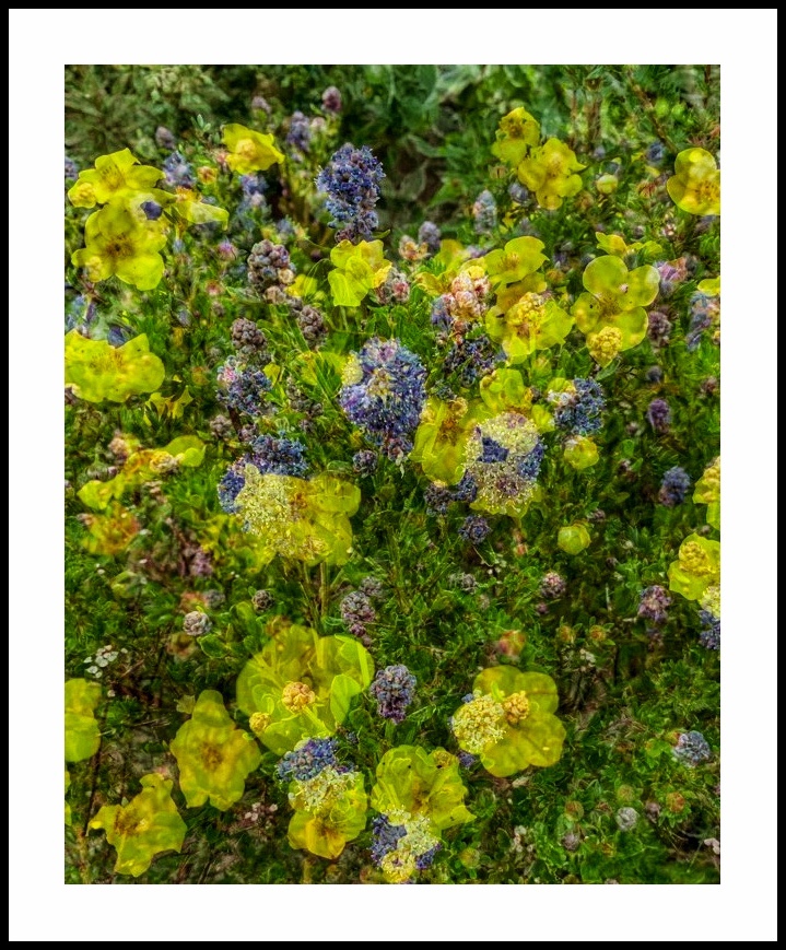 Potentilla and Ceanothus are two of my favourite bushes in the garden, so what better to show them at their best than a double exposure? There’s an app for everything!