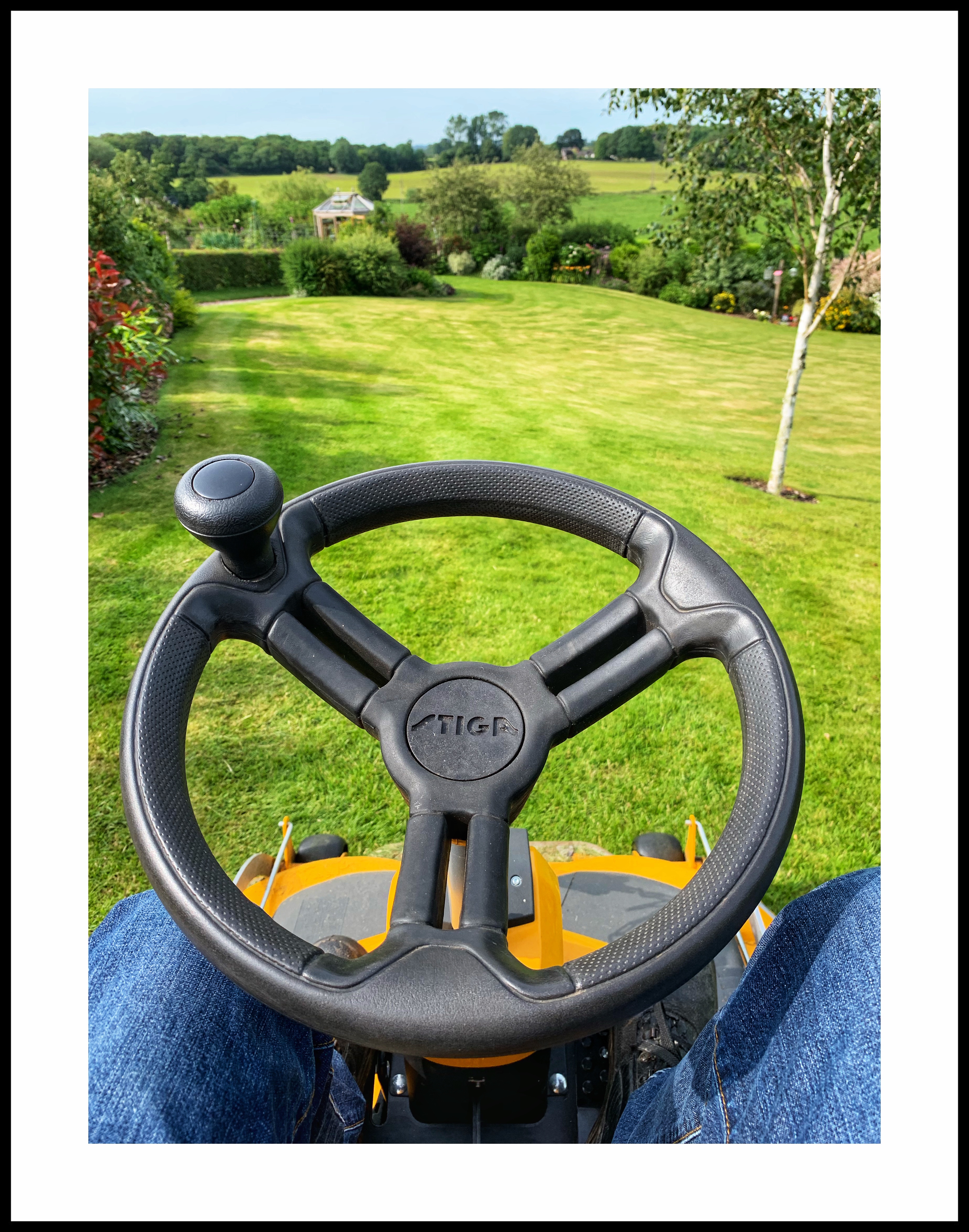 As well as getting shopping (see yesterday’s post) the other priority when getting back from holiday is mowing the lawns. Fortunately the ride-on makes fairly short work of it – just a shame it can’t do weeding too…