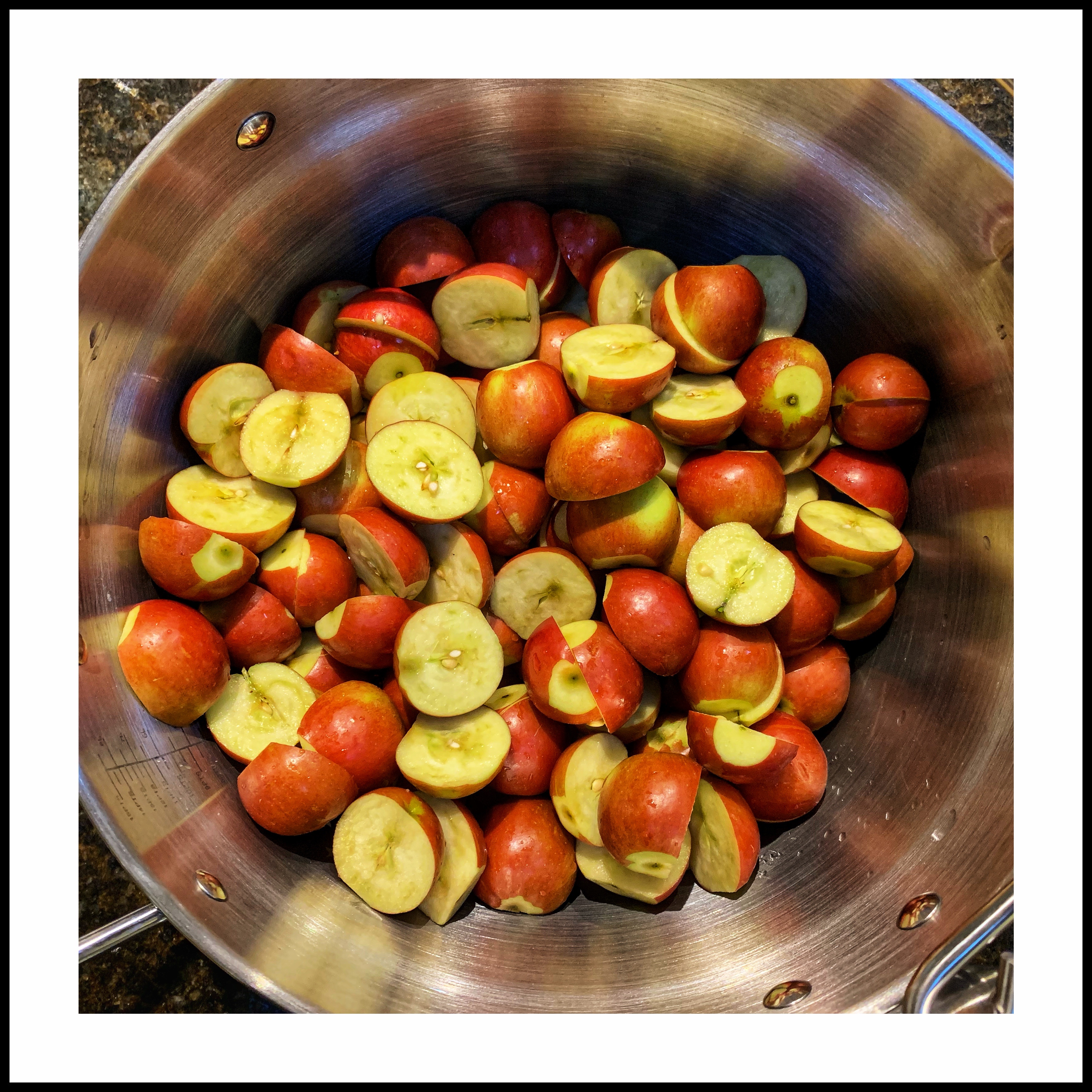 The weather this year has not been good for the fruit trees in our garden, but one tree that never fails is a crab apple tree I was given a few years back. This batch of fruit is on its way to being crab apple jelly – delicious with hot or cold meats…