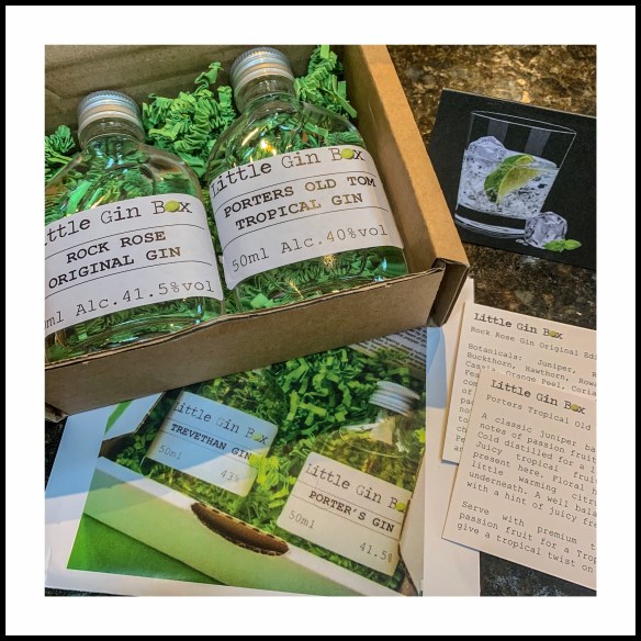 Yesterday’s lunchtime visitors brought me a belated birthday present. Fair to say that most of my birthday gifts this year involved gin, and this was no exception – a monthly ‘subscription’ of different gins to try! I’m looking forward to future deliveries…
