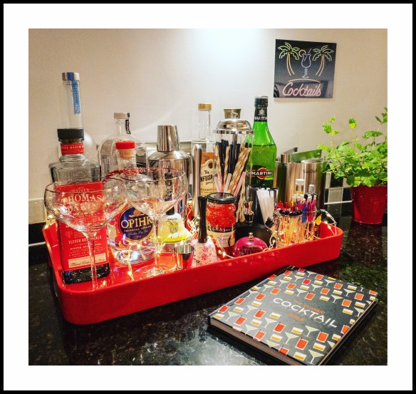 … it must be Cocktail Night! Whereas our early evening drink at home is usually a gin & tonic, Fridays are special, and that means cocktails! So what’s it to be tonight I wonder? – a champagne or prosecco cocktail, or maybe something exotic like a Porn Star Martini, a Whisky Sour or Long Island Iced Tea. Well, voting is over (I don’t have a vote, I just get to make the cocktails….) and it’s going to be a Gin Fizz tonight – gin, cherry brandy, lime juice and ginger beer, shaken not stirred of course. What’s not to like…