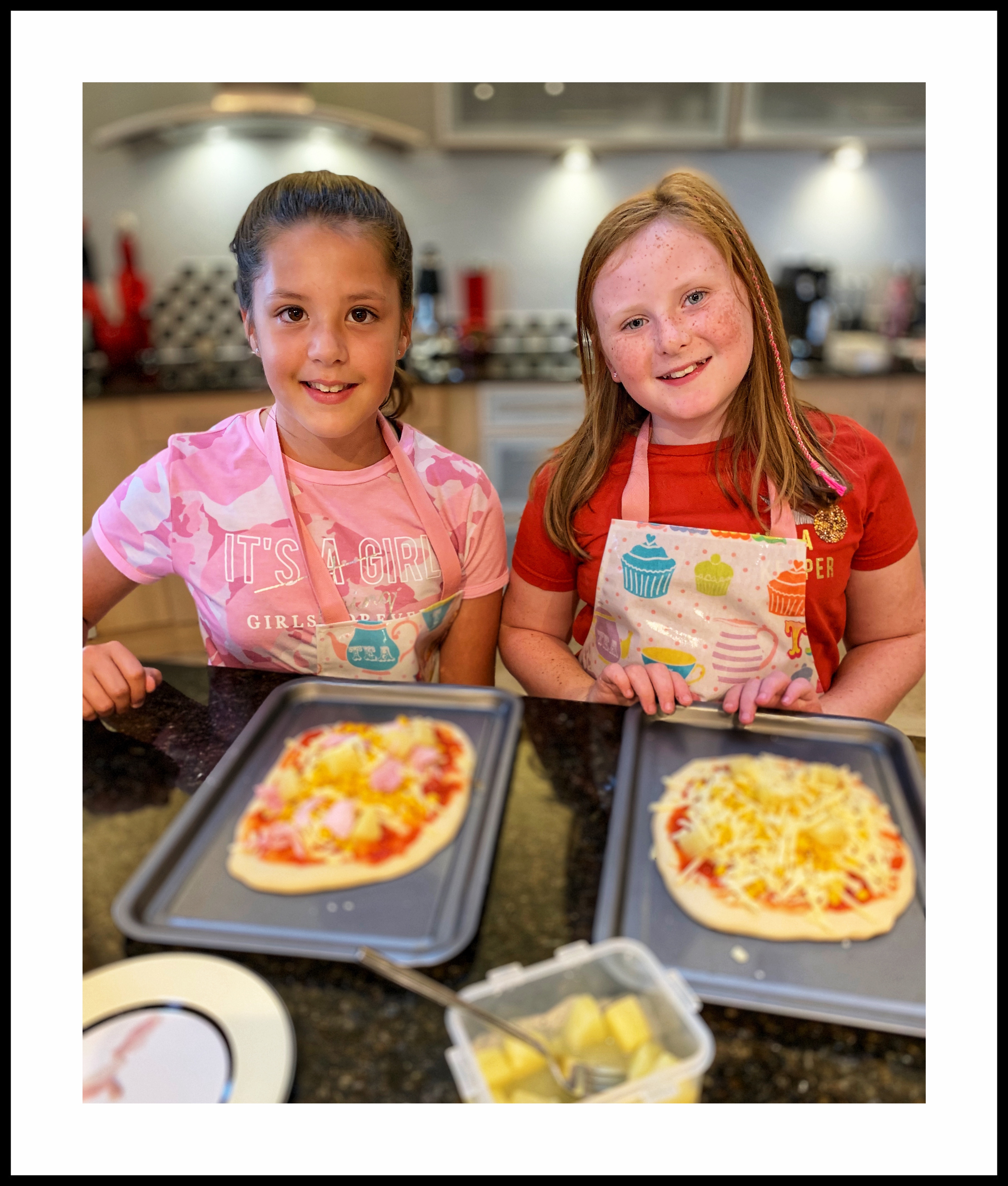 We had these two monkeys staying with us overnight, and for supper they were making their own pizzas. Total carnage in the kitchen!