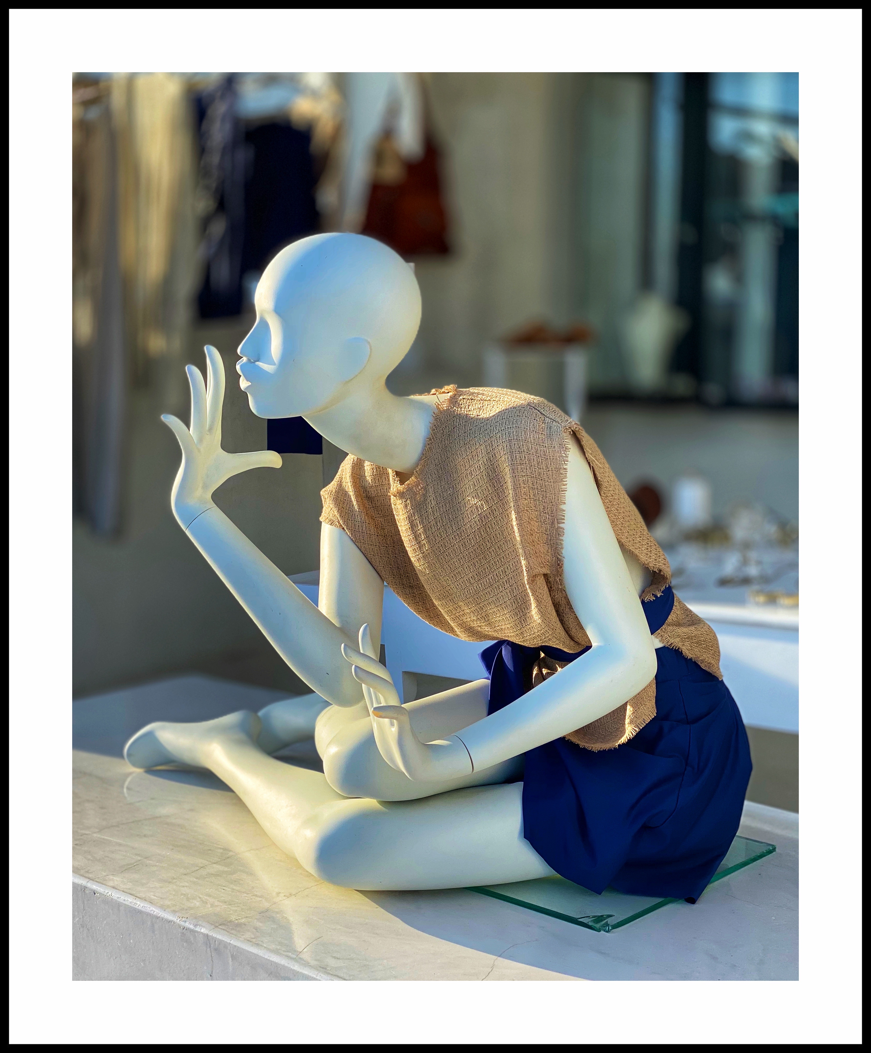 These two figures guard the entrance to the Greek Orthodox Church in Fira, Santorini. They sit very high in the air and appear to look down on people passing by. Positioning them in front of the huge church roof in the photo exaggerates their scale.