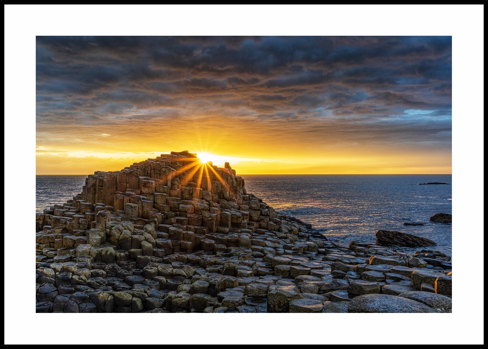 As the weather forecast was good when we got here, we had an early supper, and headed to the Giants Causeway – just in time for a massive rainstorm. We sat it out for half an hour and it cleared just as quickly, leaving this fantastic sky.